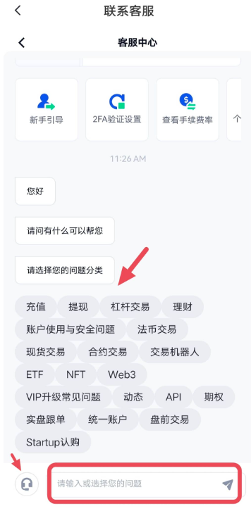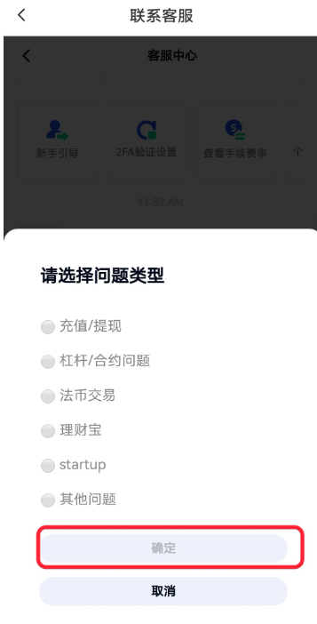 3、如需联系人工客服,可直接在下方对话框中输入并发送“人工”,或者点击对话框前的“耳机”图标,选择问题类型后点击“确定”即可。