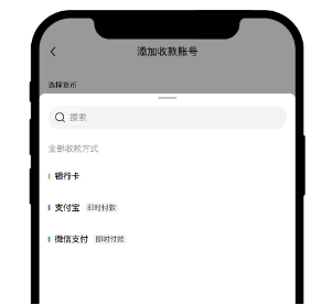 点击右上角“+”—【选择货币】、【收款方式】—可选择银行卡/支付宝/微信支付三种方式,按要求填写相关信息和提示即可完成绑定。