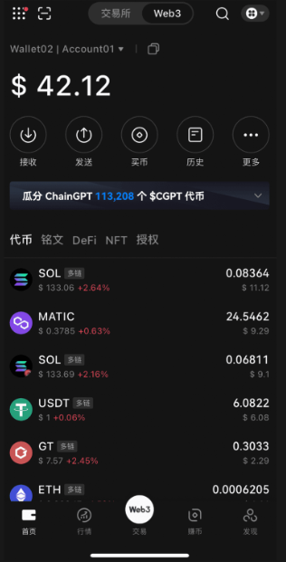 3、多链聚合:用户可随时存储、管理多链代币资产,一个钱包即可掌握丰富多彩的Web3世界。