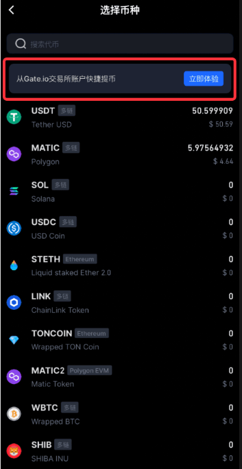 点击 Web3 钱包首页【接收】,在选择币种页点击页面上方【立即体验】。