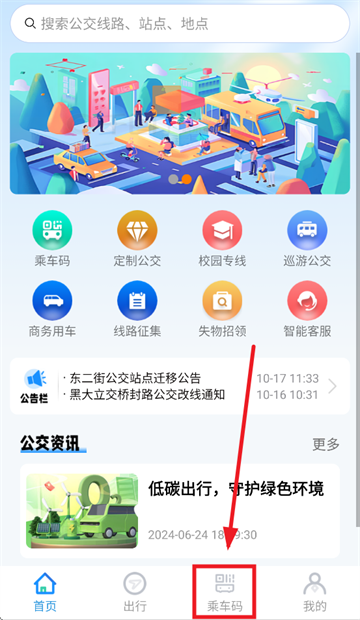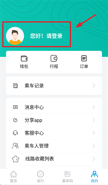 使用乘车码需在登录状态下进行,点击首页或底部“乘车码”进入页面,