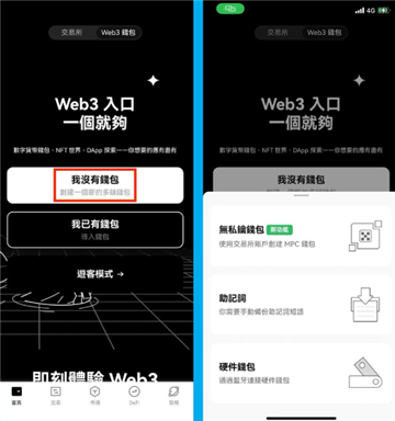 硬件钱包是在有购买冷钱包的情况下适用,以下我们主要说明无私钥钱包和注记词钱包的差异。