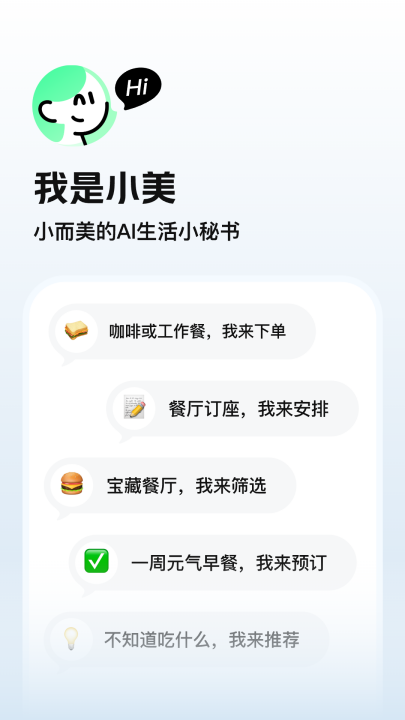 美团小美app是一款能够帮你想,代你办的AI生活小秘书,让你的生活更轻松。