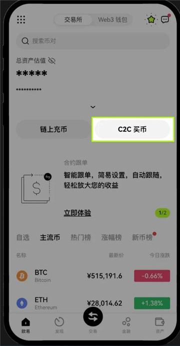 欧亿易app目前支持快捷买币和c2c买币,今天小编两种方法都给大家介绍一下: