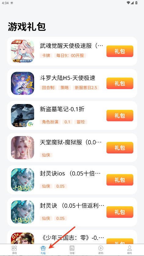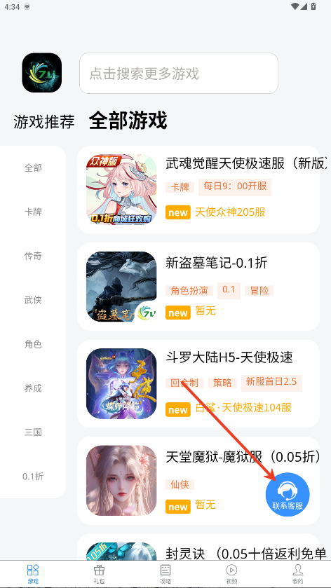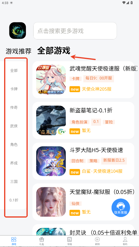 3、按类型浏览(如仙侠、卡牌、策略、BT服等),快速筛选喜好游戏。