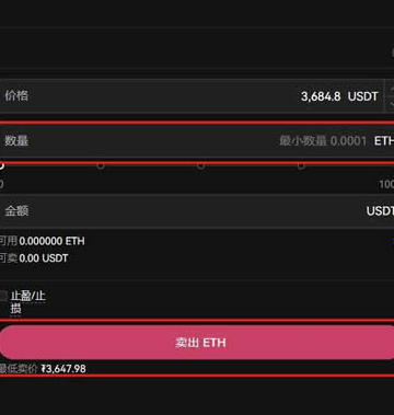 4、输入卖出ETH数量,点击卖出ETH就可以置换成USDT