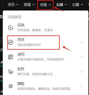 2,点击首页的交易币币进入交易页面;