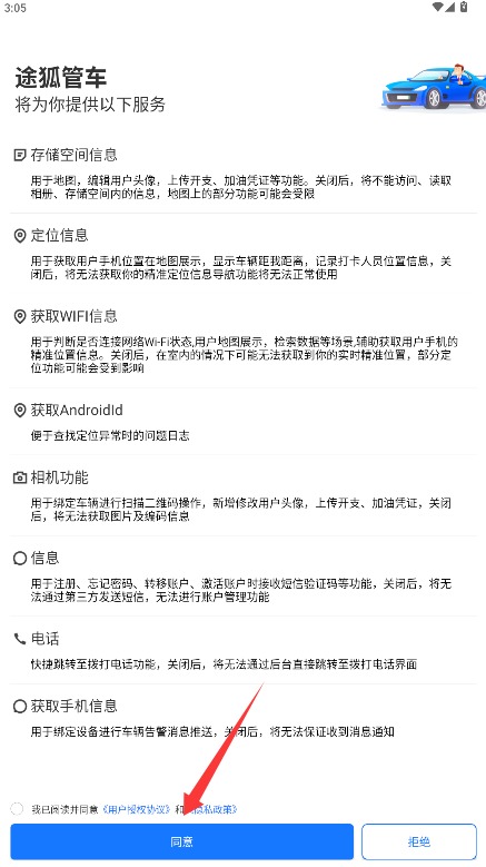 1、打开应用后仔细阅读用户协议和隐私政策,确认后点击同意按钮进入应用。