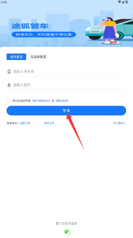 4、返回登录界面输入已注册的手机号和对应密码,验证通过后即可成功登录系统。