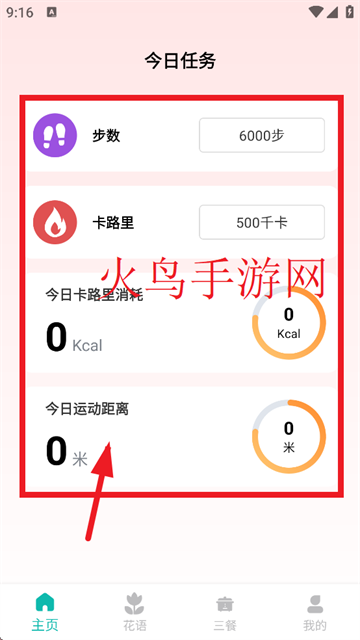 这里会显示你的运动量以及消耗的能量,开始运动吧!
