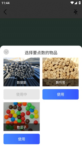 3、扫描计数这种模式可以选择多种物体例如图示的钢筋、豆子和竹签