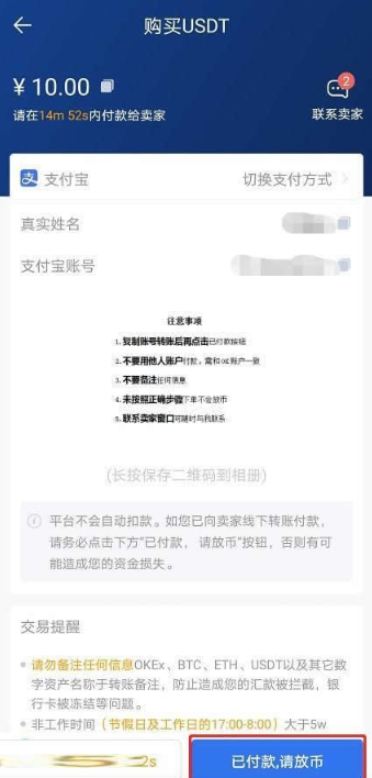 下单成功后,页面会显示卖家的付款方式,按照卖家的付款信息,进行线下付款,打款完成后点击底部的已付款,请放币即可。
