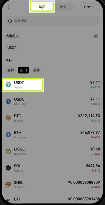 一、打开欧意首页-点击C2C买币-快捷买币-点击购买-选择需要购买的数字资产