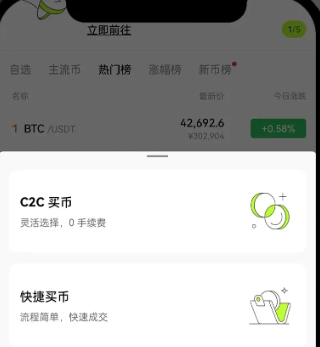 欧易交易所目前支持快捷买币和c2c买币,今天小编两种方法都给大家介绍一下: