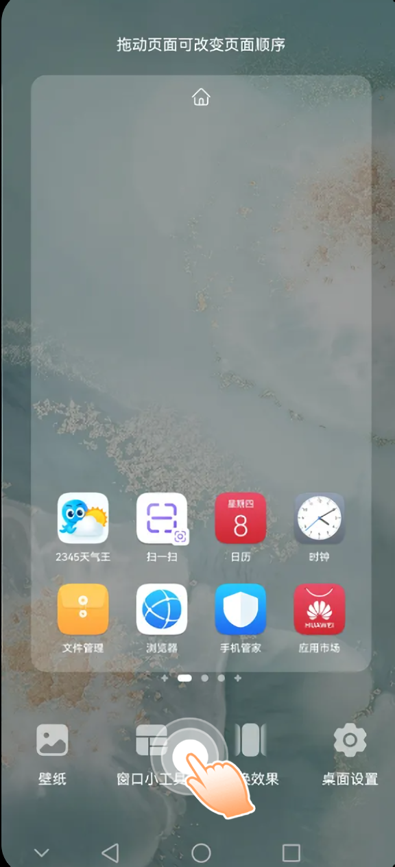 2、随后点击屏幕下方的“窗口小工具”,有的手机可能叫“桌面小组件”等等。