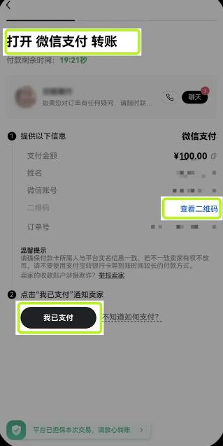 三、确定“购买详情预览”-点击“获取付款详情”-按照“商家要求的支付方式”进行转账-根据“页面展示的金额”进行付款-付款成功后点击“我已支付”-确认已转账-等待商家收到款放币即可;