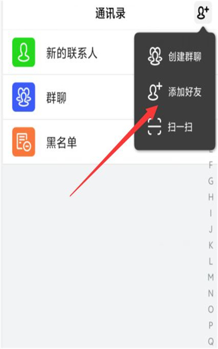 1、打开通讯录板块,点击右上角的加号选项吧。