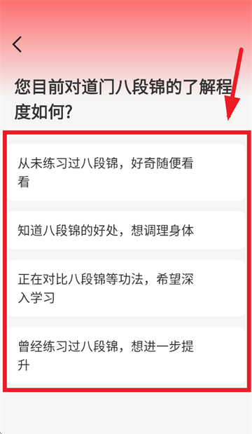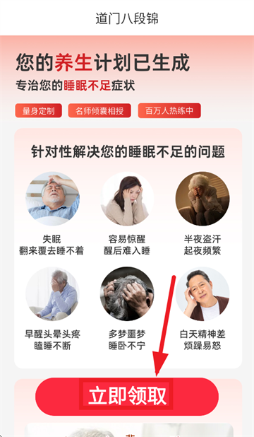 定制计划:根据你的年龄、体质和健康需求,为你推荐适合的八段锦练习方案。无论是改善亚健康、增强免疫力,还是调节气血、舒缓压力,都能找到专属的练习课程。