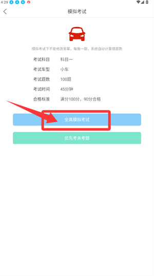 2、在模拟考试页点击全真模拟,开始考试答题。