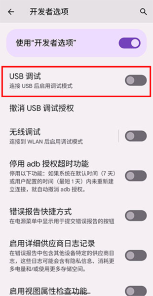 b、打开里面的“USB调试”功能。