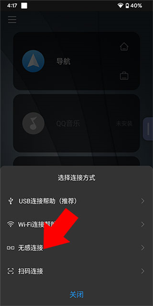 b、然后根据上方第一步来到连接选择界面,选择“无感连接”;