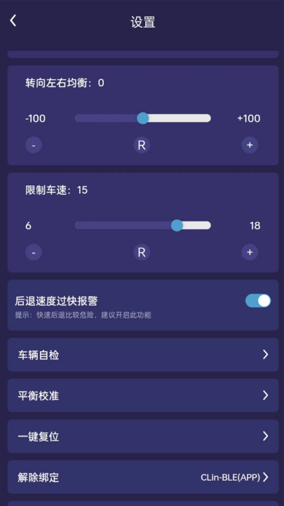 4、这样就激活了平衡车的蓝牙功能,然后使用App就能控制平衡车转向以及调整车速。