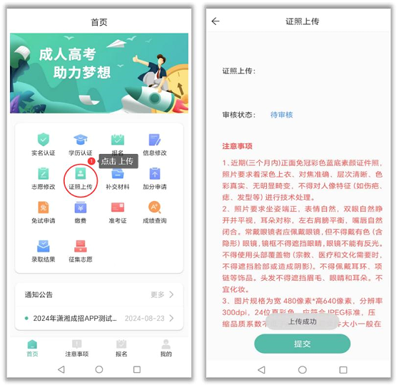 报名预约成功后须按要求上传符合规定要求的本人电子照片,等待报名确认点进行审核,如照片不符合要求审核打回后须重新上传。