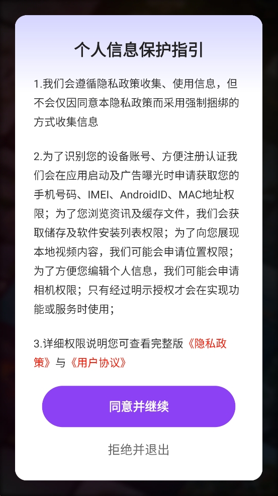 1、下载安装好之后我们首先需要同意用户协议和隐私政策才能使用。