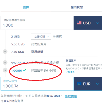 Transferwise 在国际汇款这方面便有其独到之处,最主要的一点就是Transferwise 的汇款是采用「实时汇率」和「保证汇率」,比起银行汇款汇率,Transferwise 给的汇率就优惠很多。