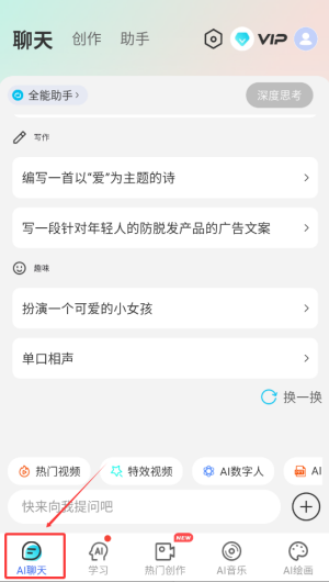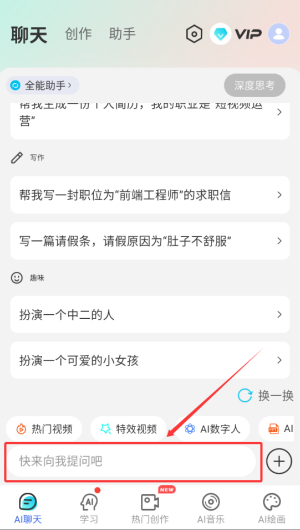 2、进入软件首页,就是AI聊天页面。