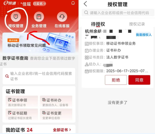 法定代表人通过“e照通”APP“授权管理”授权,点击【同意】