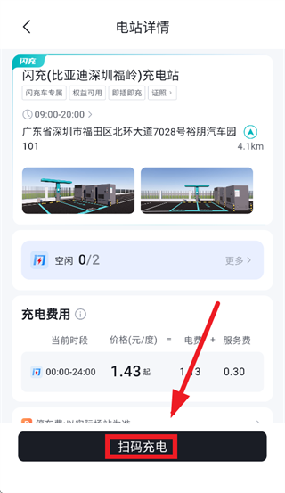 进入充电桩详情界面,到达后点击扫描充电即可