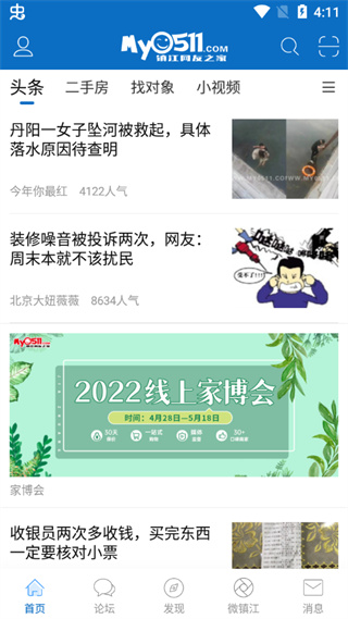 my0511手机版是一款生活服务类社区论坛软件,此款软件专为镇江地区用户打造。软件内大家可以在这里了解到各种热门资讯,而且还可以与其它用户在这里进行交流,十分好用。对my0511手机版感兴趣的用户不要错过,欢迎大家在本站下载使用。