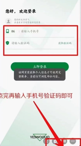 1、找到右下角的角标点击使用完整服务,输入手机号码和验证码