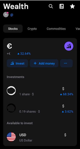 第 1 步:从你的 Revolut 主界面,到屏幕左下部分的左起第二个选项卡这是你账户的“财富”部分,你可以在其中查看和管理你的所有投资。