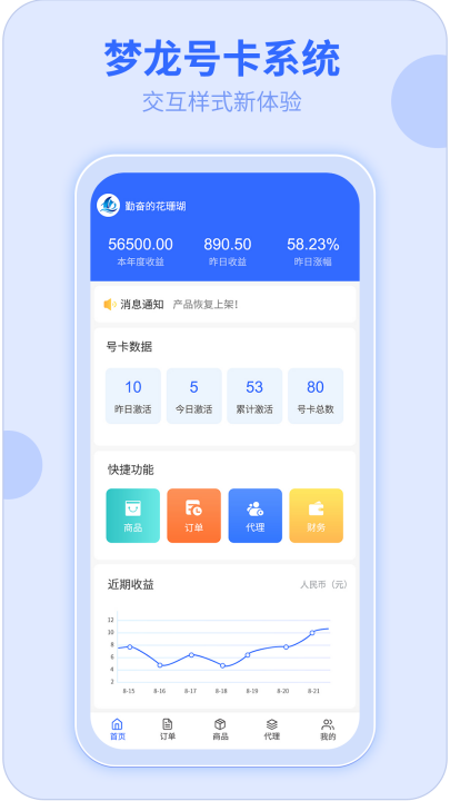 172号卡平台app,运营商直签、激活率高、提现速度快,订单即时上传,系统稳定、流畅、安全性高,号卡分销的超级好帮手。