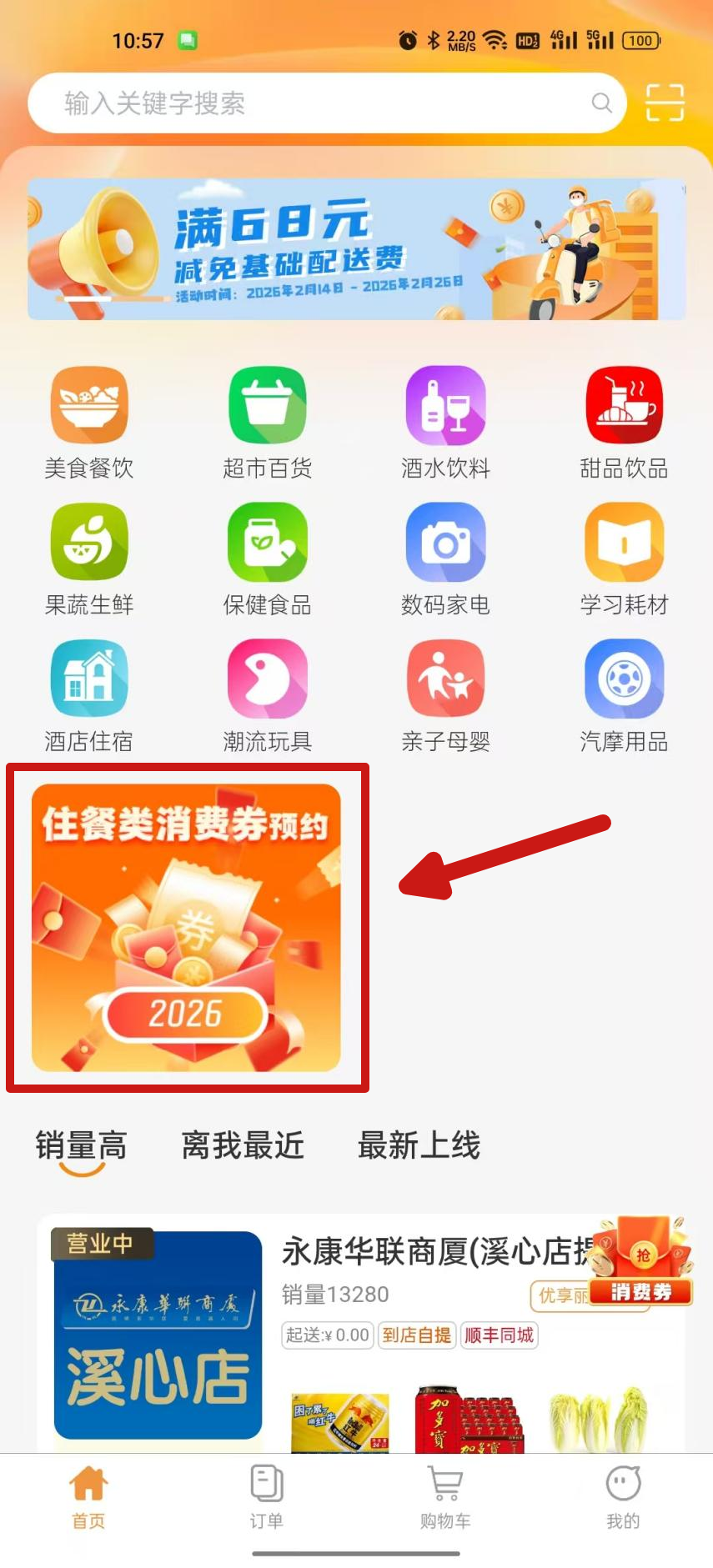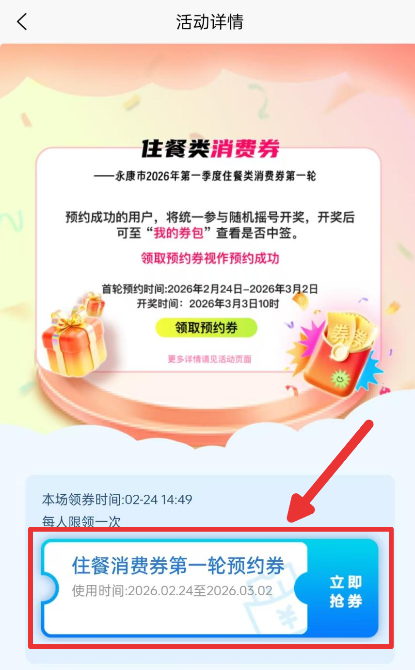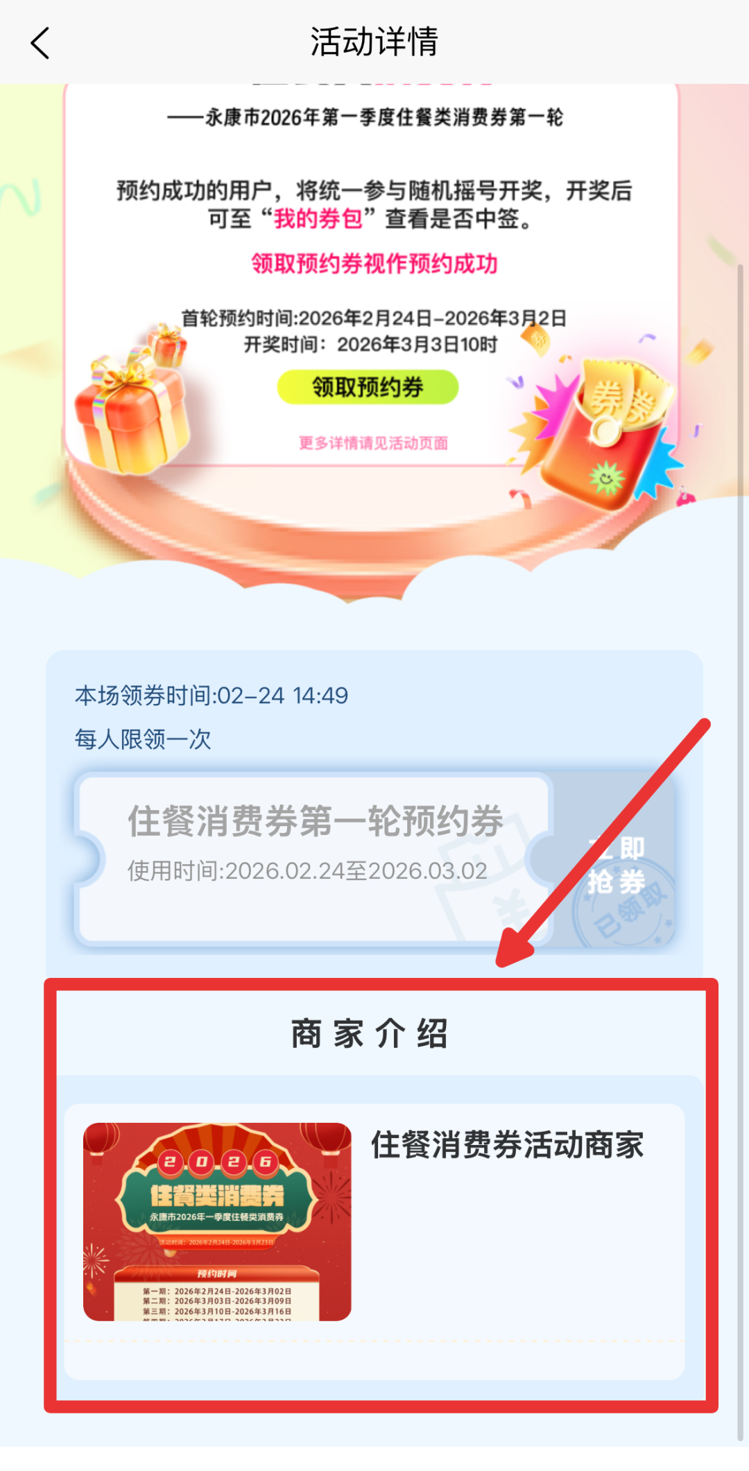 点击首页住餐类消费券预约活动页。