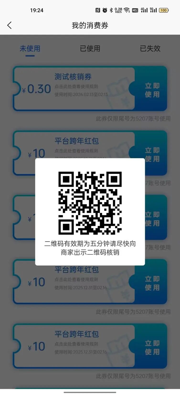 在白名单商家线下消费后,可在券包里点击住餐消费券的二维码和商家进行核销。