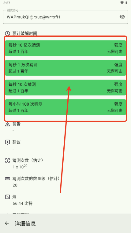 4、同时,工具还会依据算法模型进行测算,预估该密码被暴力破解所需的尝试次数,供用户参考调整。