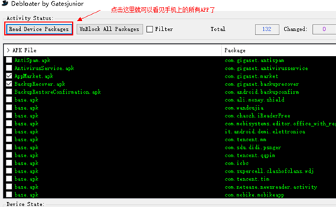 Device packages按钮即可获取手机中所有的APP程序。