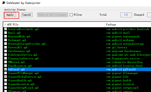 勾选你想要删除的APP,再点击“Apply”按钮就等同卸载了这些APP。