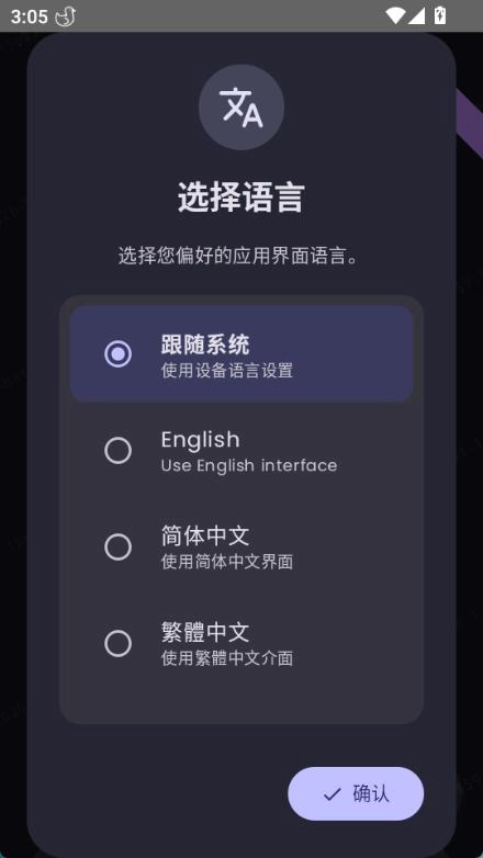 1、打开软件选择您喜欢的界面语言(例如简体中文),再点击“确认”按钮。