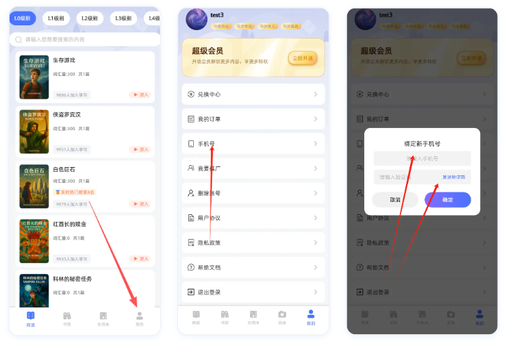 进入“我的”页面,点击绑定手机号,完成手机号的验证绑定