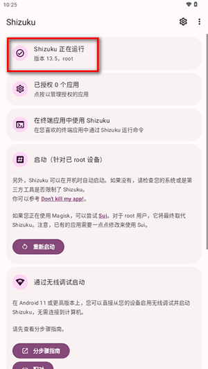 1、首先,从下载Shizuku应用,确认其已启动并处于运行状态。