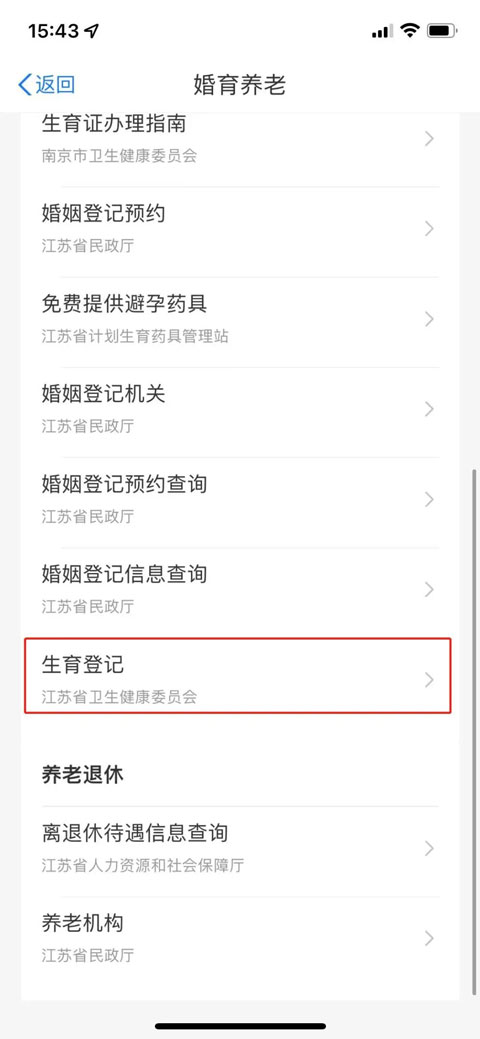 3、在“婚育养老”专栏选择“生育登记”服 务;