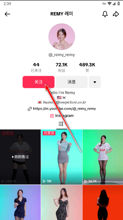 3、接着就会进入到该人的个人资料页,我们点击关注按钮即可