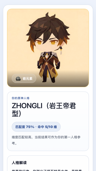 2、会根据你的不同测试,生成不同的原神人格,好玩且便捷。