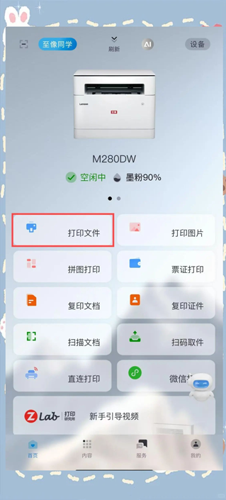 1、打开联想至像打印选择,打印文件并打开你需要打印的文件资料即可。