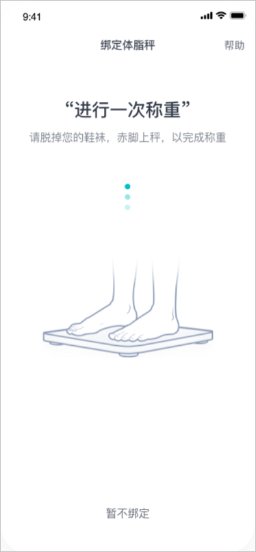 4、在此页面轻踩上秤,开始绑定体脂秤