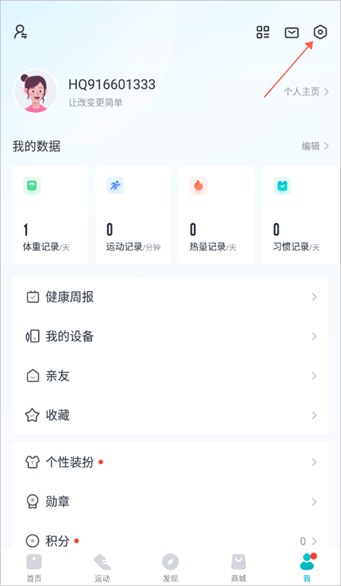 1、在“我”页面点击右上角的“设置”